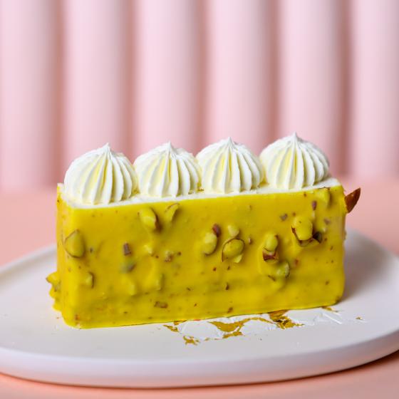 Бисквит (инвертный сахар, яйцо, сахар, миндальная мука, сливки 33%, мука, разрыхлитель, соль, масло растительное), хрустящий слой (белый шоколад, мука, сливочное масло, белок куриный, сахарная пудра, растительное масло), ванильный мусс (молоко, желатин, вода, сливки, шоколад Callebaut белый), цитрусовое кремю (пюре лайма, пюре лимона, сахар), глазурь (белый шоколад Callebaut, масло сливочное, миндаль)