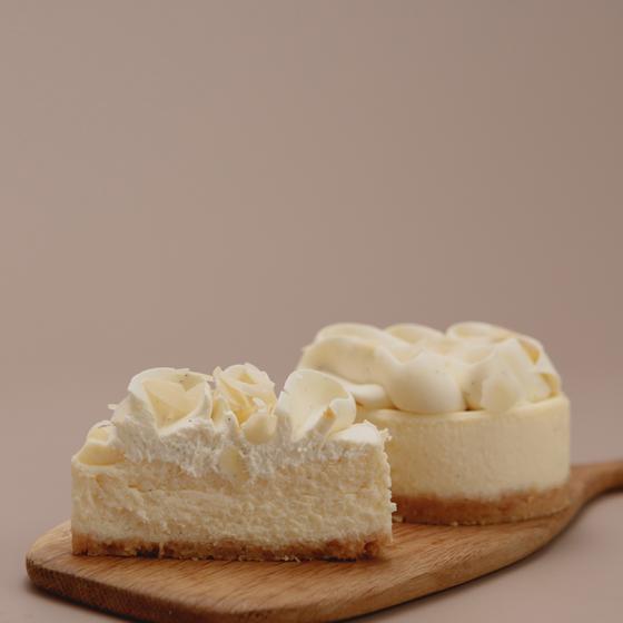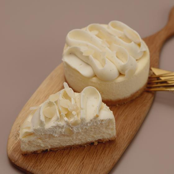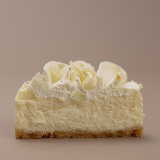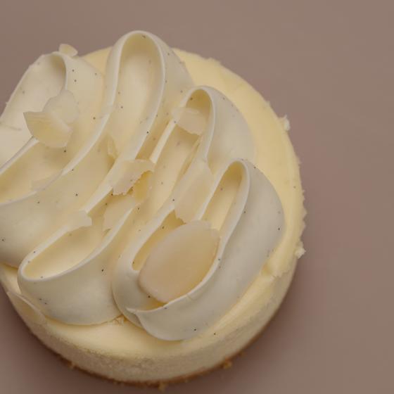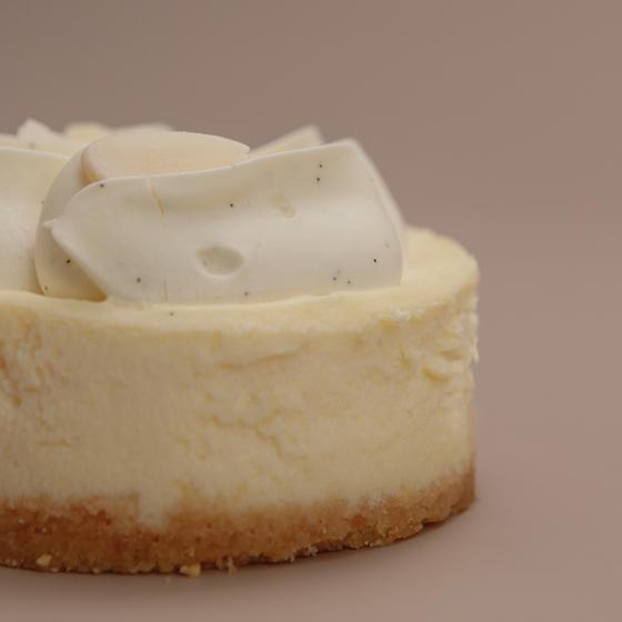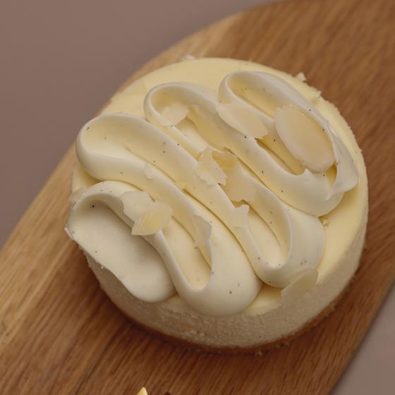 Чизкейк на основе ванильного творожно-сырного слоя с добавлением ганаша из белого шоколада и стручка ванили. Состав: хрустящая песочная основа (сливочное масло, миндальные лепестки, мука, миндальная мука, сахар, крахмал, соль), ванильный сырный слой (творожный сыр, маскарпоне, сливки, сахар, стручки ванили, яйца), ванильный ганаш (сливки, белый шоколад, ванильные стручки, желатин).