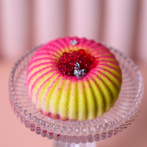 Молоко, мука, масло сливочное 82,5%, пектин, малиновое пюре, клубника, разрыхлитель, сахар, сахарная пудра, сливки 33%, маскарпоне, шоколад Callebaut белый, яйцо, лимонная кислота, крахмал, какао масло, желатин